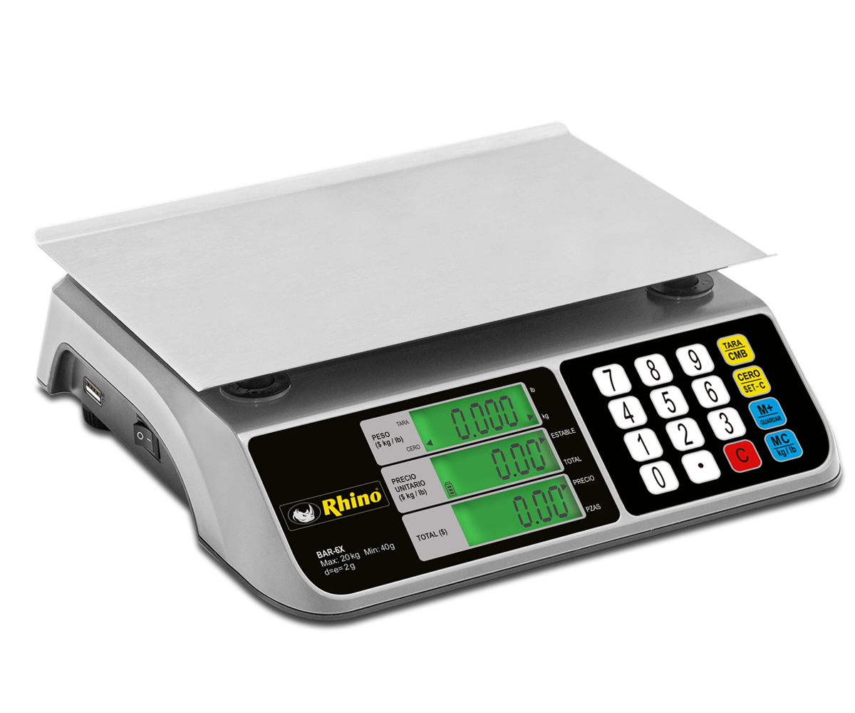 La Báscula de Mostrador Rhino BAR-6X es una herramienta versátil y precisa, diseñada para optimizar las operaciones en entornos comerciales con espacio limitado. Con una capacidad máxima de 20 kg y una precisión de 2 g, esta báscula garantiza mediciones exactas para una amplia gama de productos.