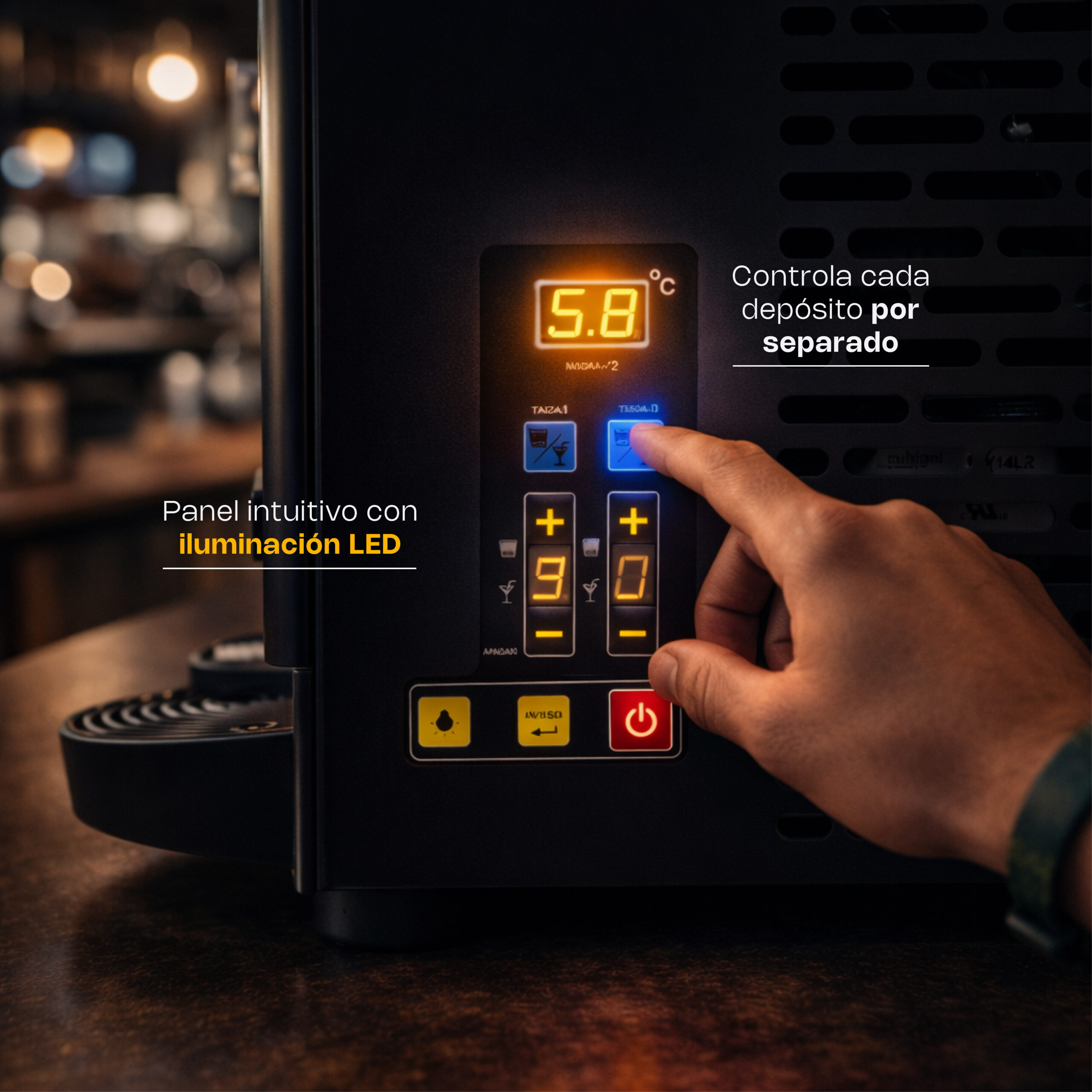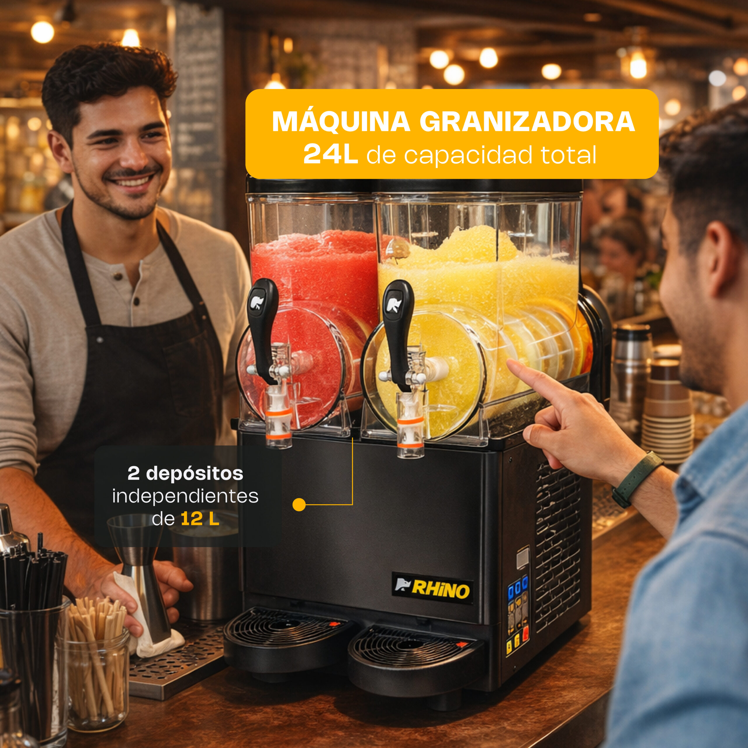 - Doble depósito independiente: Permite ofrecer dos sabores simultáneamente o ajustar cada tanque según la demanda.