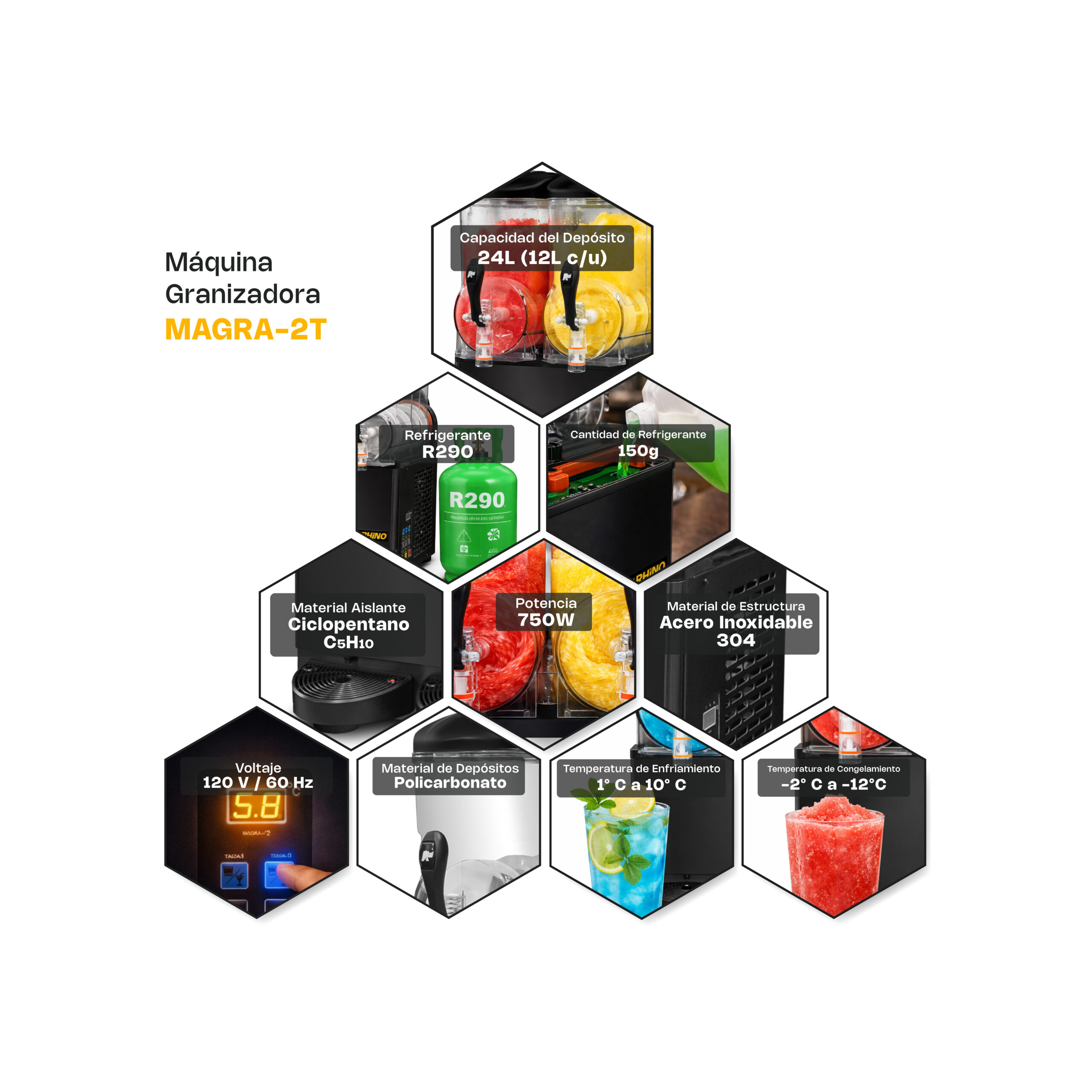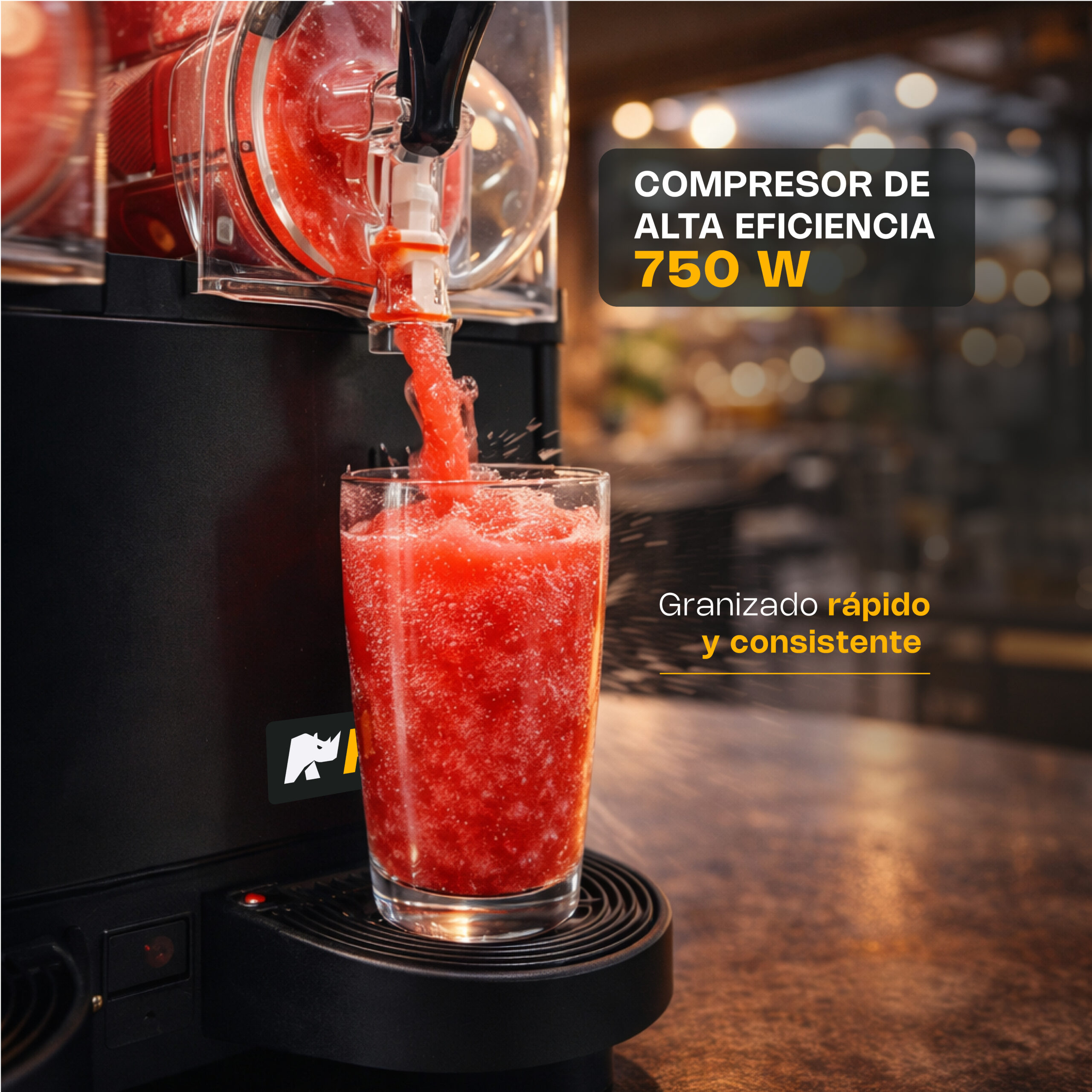 - Granizado rápido y estable: Compresor de alta eficiencia que mantiene consistencia uniforme durante todo el servicio.